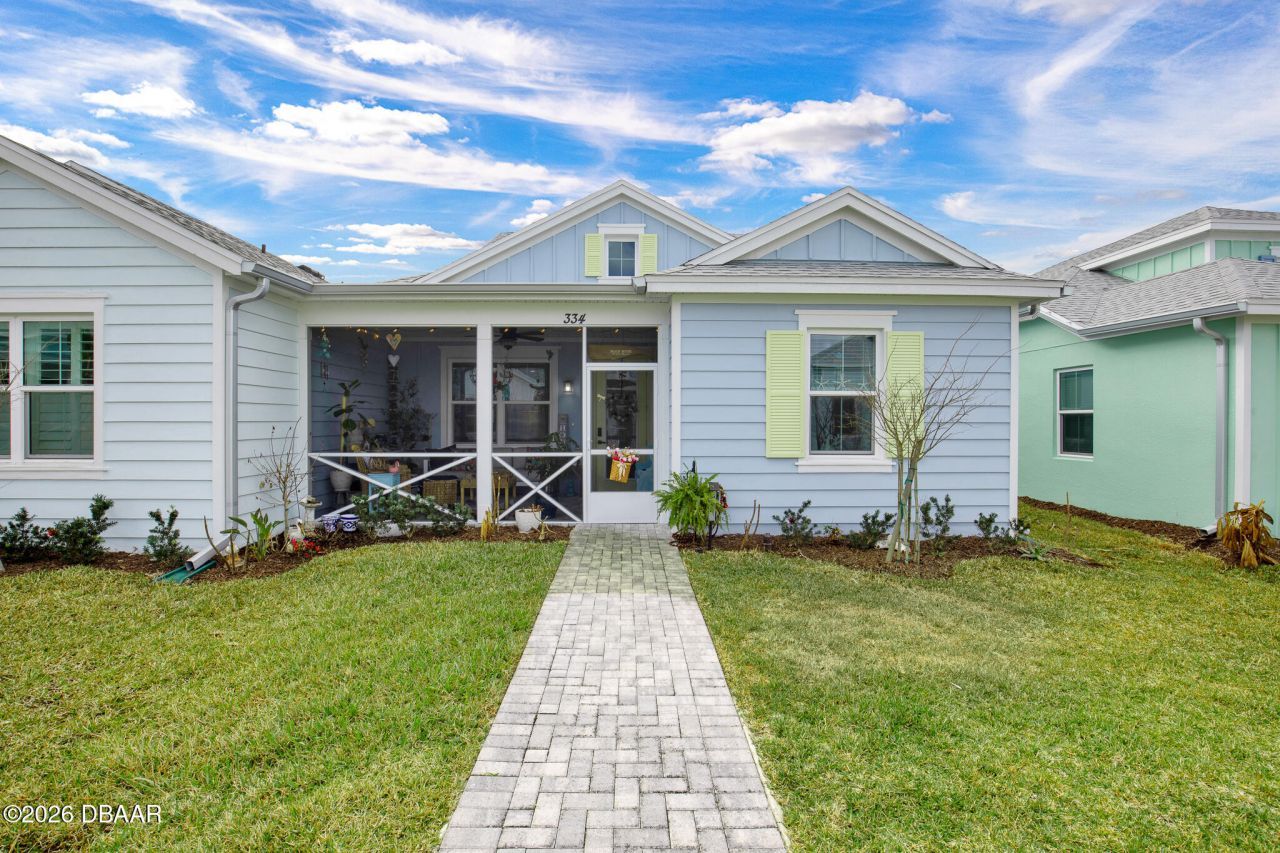 Gorgeous CAMELLIA COTTAGE with screened front porch and full glass front door! This home has light, bright finishes to include plank tile flooring, light gray kitchen cabinets with 42'' uppers, soft close doors and drawers, and custom shiplap on the front of the island. Gas range, quartz countertops, and pantry make this kitchen the ideal set up! The large great room has a vaulted ceiling with exposed beam and a custom bifold barn door to lend privacy to the guest wing. The primary suite has cu...Gorgeous CAMELLIA COTTAGE with screened front porch and full glass front door! This home has light, bright finishes to include plank tile flooring, light gray kitchen cabinets with 42'' uppers, soft close doors and drawers, and custom shiplap on the front of the island. Gas range, quartz countertops, and pantry make this kitchen the ideal set up! The large great room has a vaulted ceiling with exposed beam and a custom bifold barn door to lend privacy to the guest wing. The primary suite has custom shiplap on the back wall and a large walk-in closet with shelving. The primary bath has a tile shower with seamless glass doors, tile to the ceiling, double vanity and water closet. The laundry room has a stackable washer and dryer and cabinets. This home is located in Phase 8 and is only two years old. Enjoy all that 55 year and better Latitude Margaritaville has to offer! Resort pool, restaurant/bar, theater, fitness center on site with Beach Club and Pool in Ormond Beach. Call today!