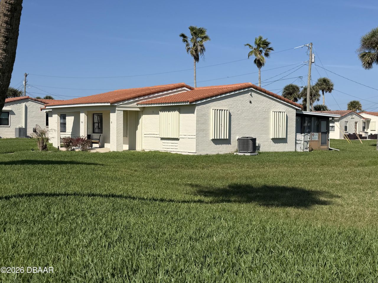 njoy single-family living with condo-style convenience in this half duplex--all without the high condo fees. This beautifully remodeled 2-bed, 1-bath villa is just one block from the ocean and features a new roof and Main A/C (2024), updated kitchen and bath, tile throughout, hurricane shutters, stackable washer/dryer. You will do all your living and entertaining in the spacious 24??14 three-season rear porch with sliding windows all around and a separate a/c unit. This beautiful home is on a co...njoy single-family living with condo-style convenience in this half duplex--all without the high condo fees. This beautifully remodeled 2-bed, 1-bath villa is just one block from the ocean and features a new roof and Main A/C (2024), updated kitchen and bath, tile throughout, hurricane shutters, stackable washer/dryer. You will do all your living and entertaining in the spacious 24??14 three-season rear porch with sliding windows all around and a separate a/c unit. This beautiful home is on a corner lot with plenty of grassy area for lounging or playing. The low $110/month association fee (paid quarterly) includes lawn care, irrigation water, roof power washing, exterior painting, and access to a private fenced pool, clubhouse, tennis, and shuffleboard. Fences and plants acceptable with approval. Ideally located near beach access, parks, mini golf, dining, and shopping.